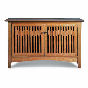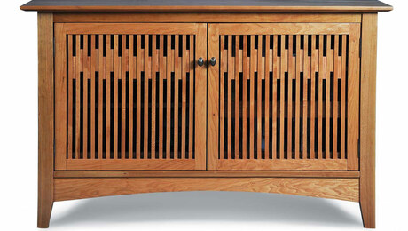 I teach quite a bit and this wall cabinet is probably one of my favorite things to teach. It’s not that big of a piece, but it packs in a ton of woodworking information. There’s dovetailed case construction, through mortise-and-tenon joinery, a traditional dovetailed drawer, and a frame-and-panel door. Between all those things, that’s 90 percent of the things that you need to know to build just about any piece of furniture. There are a lot of quiet design elements that define this piece, and one loud thing–the kumiko panel. Making kumiko is a really fun technique and it’s something I’ve been incorporating into my work for the last few years, and I still haven’t exhausted the possibilities with it. -Mike Pekovich