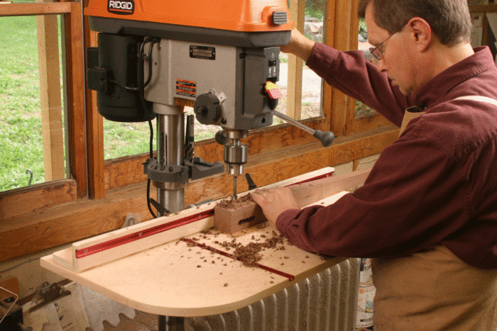 When it comes to drilling and mortising, it’s hard to beat the quiet accuracy of the drill press and hollow-chisel mortiser. A floor-standing or benchtop drill press brings power, versatility, and accuracy to your drilling, putting even the best handheld drill to shame. The mortiser is a tool that will speed up your efforts at cutting mortises, making the job accurate and repeatable from part to part. This chapter is full of advice and tips to help you understand and use these shop mainstays effectively.